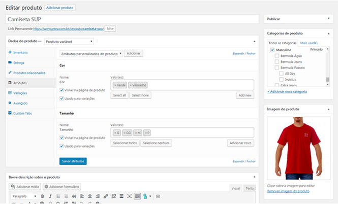 Consegue organizar os produtos em categorias e subcategorias; configurar o controle de estoque para cada variação definida, habilitar e desabilitar o recurso de avaliações do produto com moderação e muito mais.