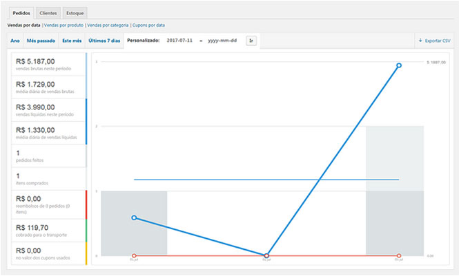 O WooCommerce oferece diversos tipos de relatórios que ajudam você a entender como seu e-commerce está progredindo. Você tem relatórios de: